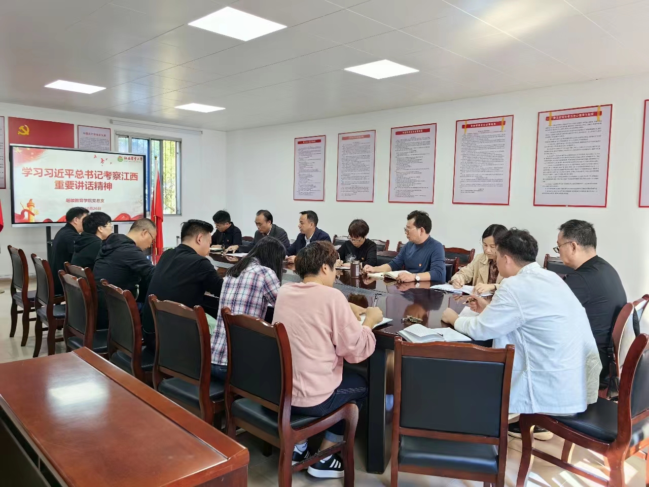 为深入学习贯彻习近平总书记考察江西重要讲话精神,促进学事业高质量发展,1026午,学召开党总支理论学习中心组(扩大)学习会,全体党员参加党总支书记汤雄杰主持会议。