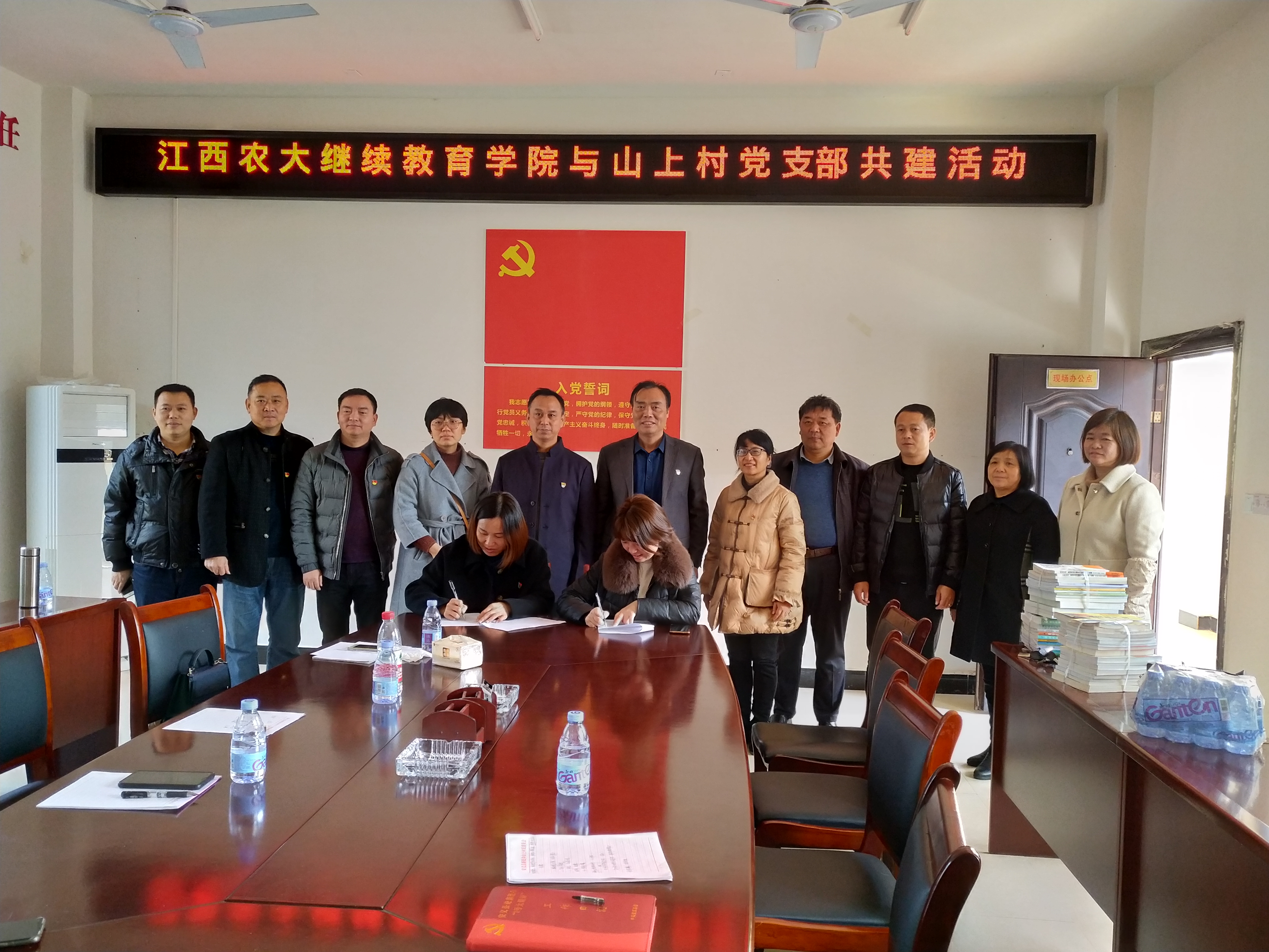 座谈结束后,两个党支部书记签署了共建协议,汤雄杰代表支部进行了书籍捐赠仪式,支部党员代表走访了山上村党支部3名困难党员,并送上了慰问品和支部全体党员自筹的慰问金。
