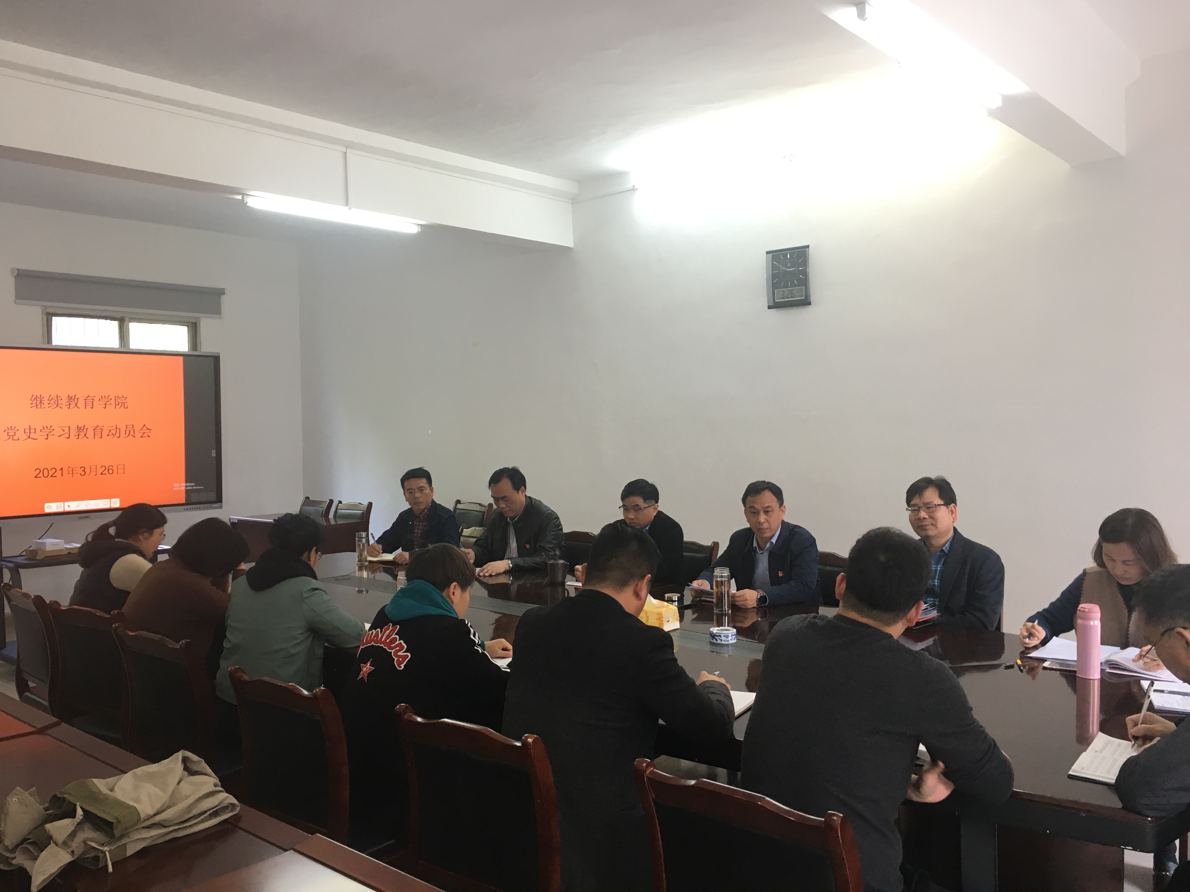 党总支书记汤雄杰作动员讲话。一要深刻领会开展党史学习教育的重大意义。深刻领会习近平总书记的重要讲话精神,切实把思想统一到中央的重大决策部署上来,切实增强学习党史的思想自觉和行动自觉。二要创新方式方法,做到学用结合,努力实现办实事解难题开新局。充分利用好江西乃至全国的红色资源,传承红色基因;围绕党史学习教育的总体目标,聚焦公司工作的重点难点,特别是在纵深推进“一村一名老员工工程”、做强做大培训、函授教育二次出发、干部队伍建设和教学硬件提升等工作上,做到解放思想、把握大势、拿出实招、砥砺前行、力求破局,为公司“十四五”规划顺利实施开好头、起好步;同时要求全体党员要积极开展“三勤”活动,为学员提供必要的帮扶,要巩固“不忘初心、牢记使命”主题教育成果,持续解决职工关心的切身利益问题,让为民服务成为每个党员终身使命。三要加强组织领导,精心部署推进,狠抓工作落实,高质量完成党史学习教育任务。