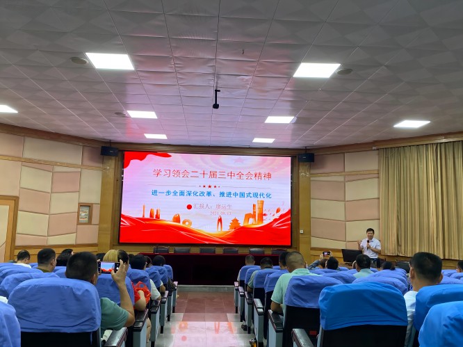 廖运生副教授从“深刻认识党的二十届三中全会的主题和意义、深入学习党的二十届三中全会的新思想和新要求、认真领悟党的二十届三中全会的新部署和新举措”三个方面对党的二十届三中全会精神进行了宣讲,其中重点就全会通过的《中共中央关于进一步全面深化改革、推进中国式现代化的决定》的主要内容进行了概括和介绍。最后指出,学习好贯彻好全会精神是当前和今后一个时期全党全国的一项重大政治任务,大家要深入学习领会全会精神,深刻领会和把握进一步全面深化改革的主题、重大原则、重大举措、根本保证。