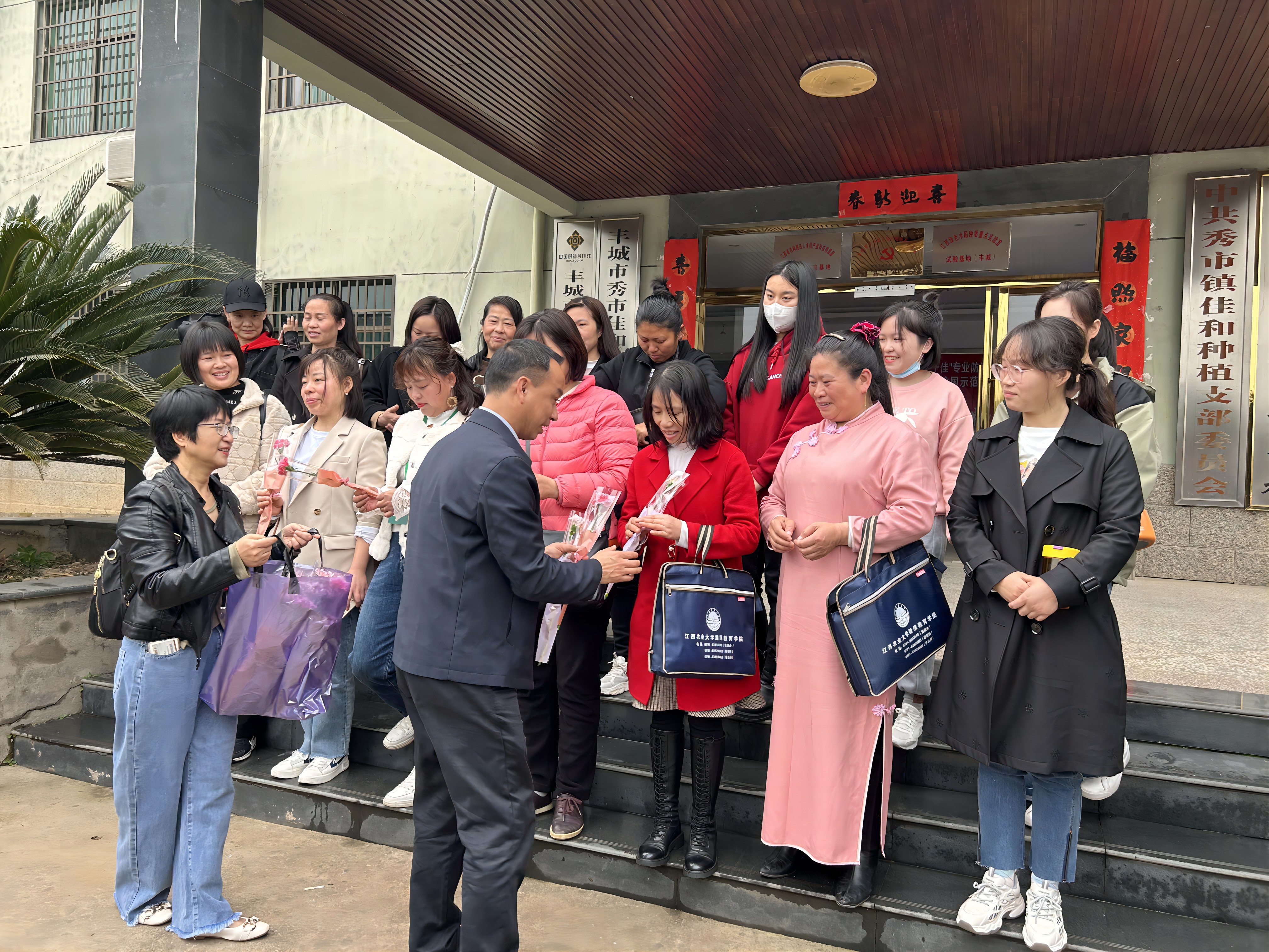 在丰城教学实践基地,公司党总支书记汤雄杰将代表着健康和好运的鲜花送到每一位“头雁”女学员的手中。一束束芬芳的鲜花,一句句温馨的祝福,承载着公司对女学员的美好祝愿。