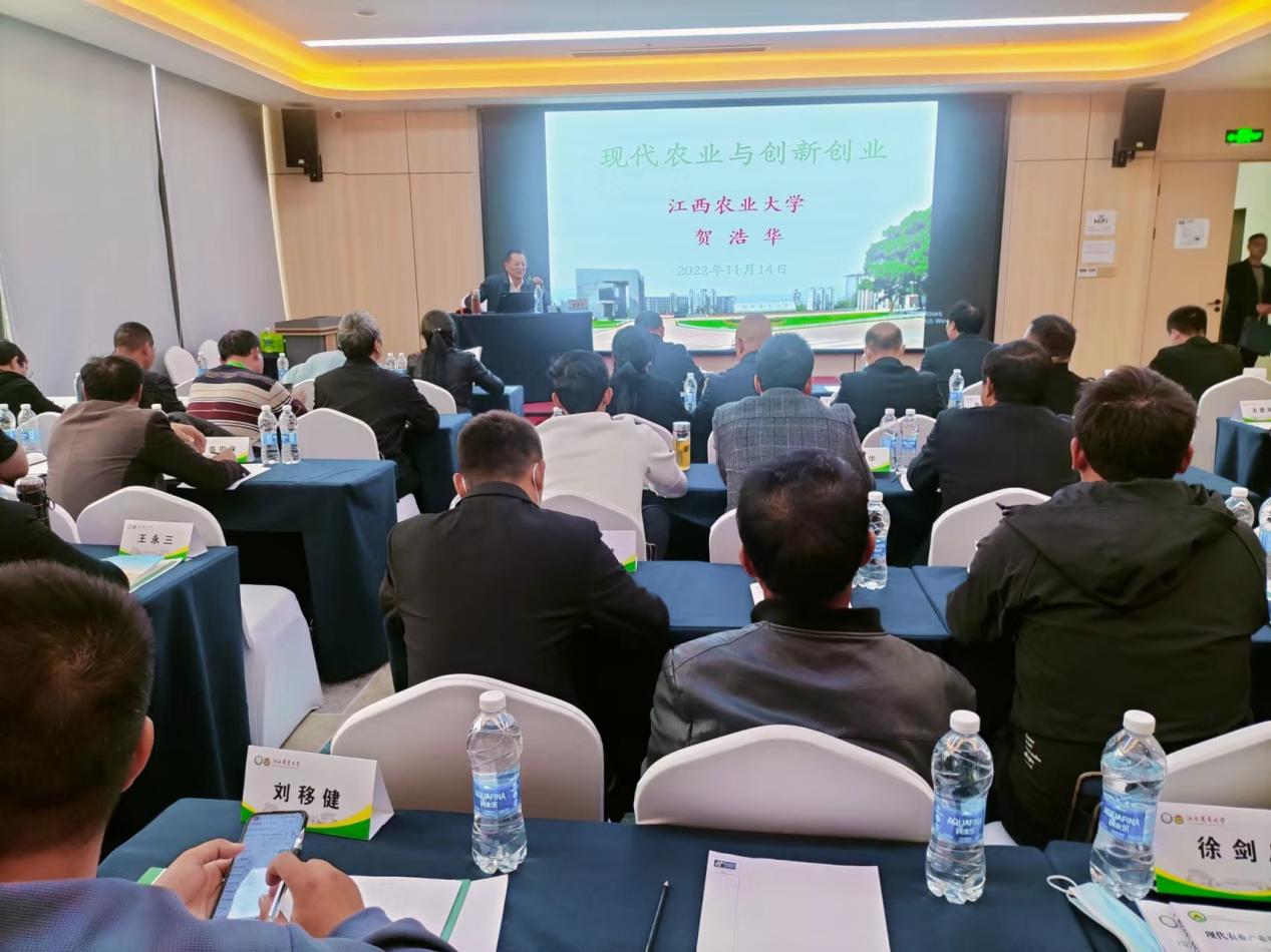 发展现代农业、倡导创业创新是全面推进乡村振兴、实现农业农村现代化的应有之义。为深化“头雁”们对现代农业、创新创业以及江西水稻产业发展的认识,11月14日下午,贺浩华副董事长走进“头雁”项目第四期学员课堂,为“头雁”综合专题培训班学员们讲授“现代农业与创新创业“专题课程。