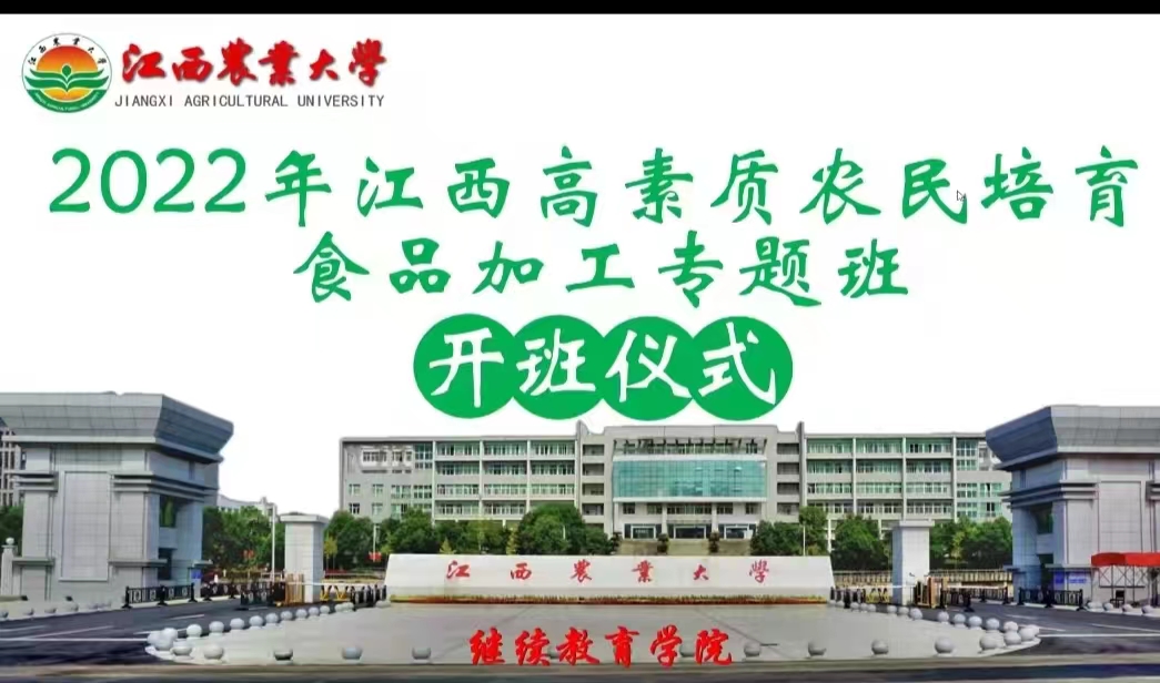 为精准服务学员创新创业,加强一二三产业融合,推动乡村产业发展,按照江西省农业农村厅2022年高素质农民教育培训相关文件要求,7月12日晚上,2022年江西高素质农民培育食品加工专题培训班在PA视讯平台顺利开班。省农技推广中心科宣处刘俊颖副科长出席线上开班仪式并上了“培训第一课”。