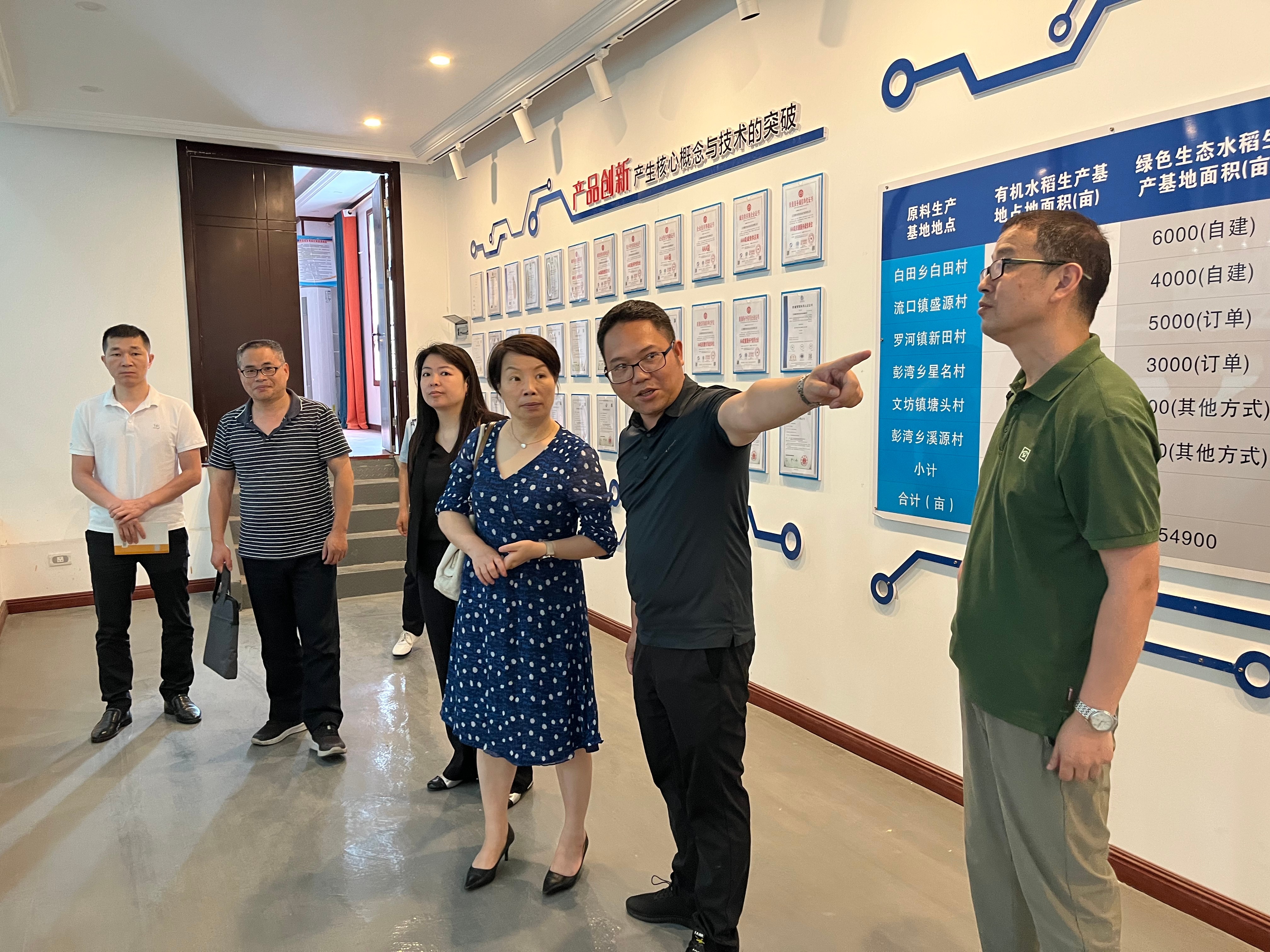 周艺萍一行先来到贵溪市头雁学员洪海龙的江西蓑衣佬农农业开发有限公司,仔细参观了企业稻米加工、年糕及米粉生产线,详细了解企业线上、线下销售、品牌塑造等情况,并指出企业在米粉、年糕保鲜等方面存在的问题,并提出可行性的建议。此外,调研组重点围绕下一步创建江西贵溪米制品加工科技小院的依托单位产业基地环境、合作入驻团队的工作环境、生活保障情况进行实地考察。