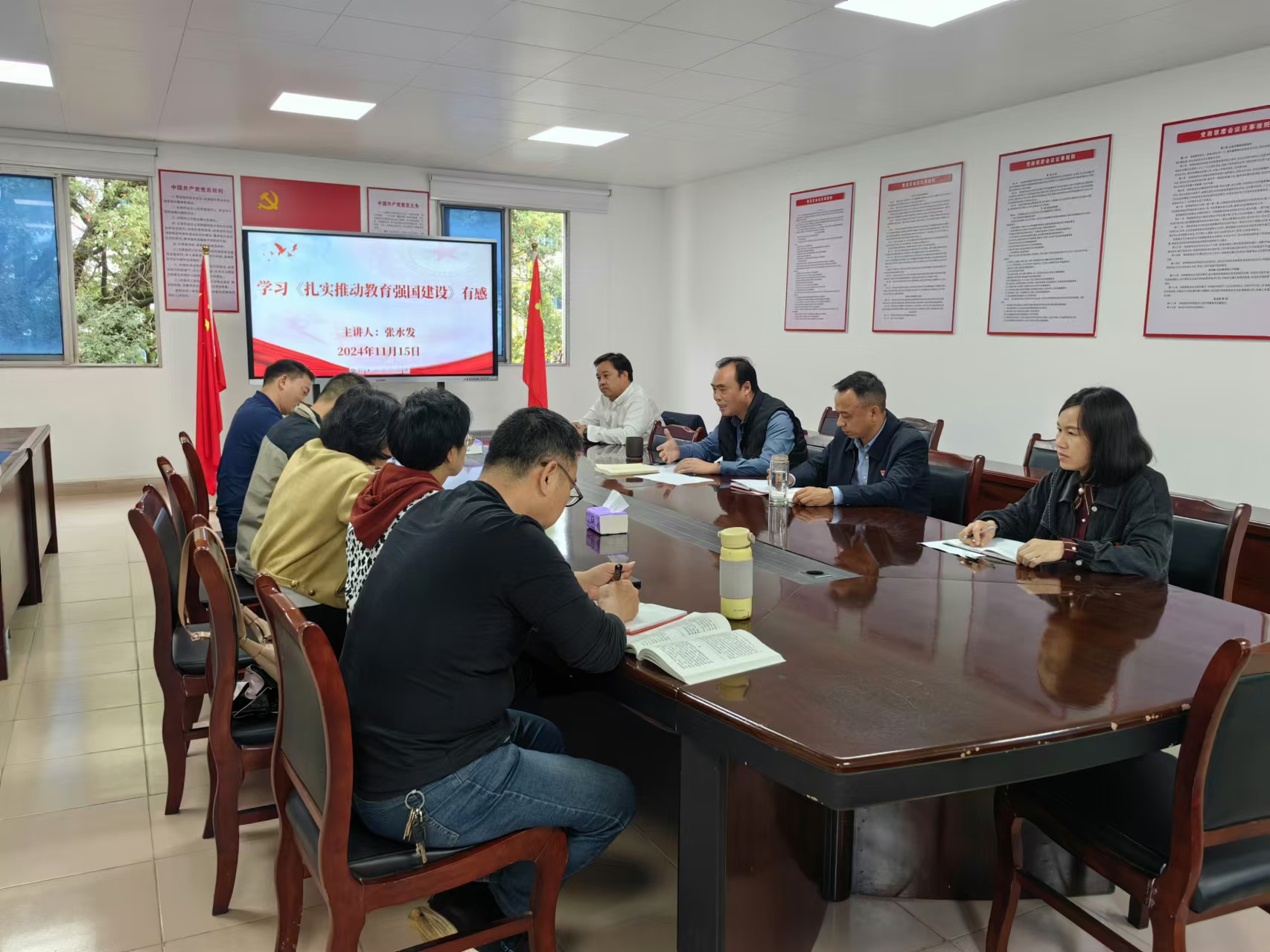 为认真做好习近平同志《论教育》的学习贯彻工作,11月15日下午,公司教工第二党支部安排党总支副书记张水发给支部党员上党课,支部全体党员参加。