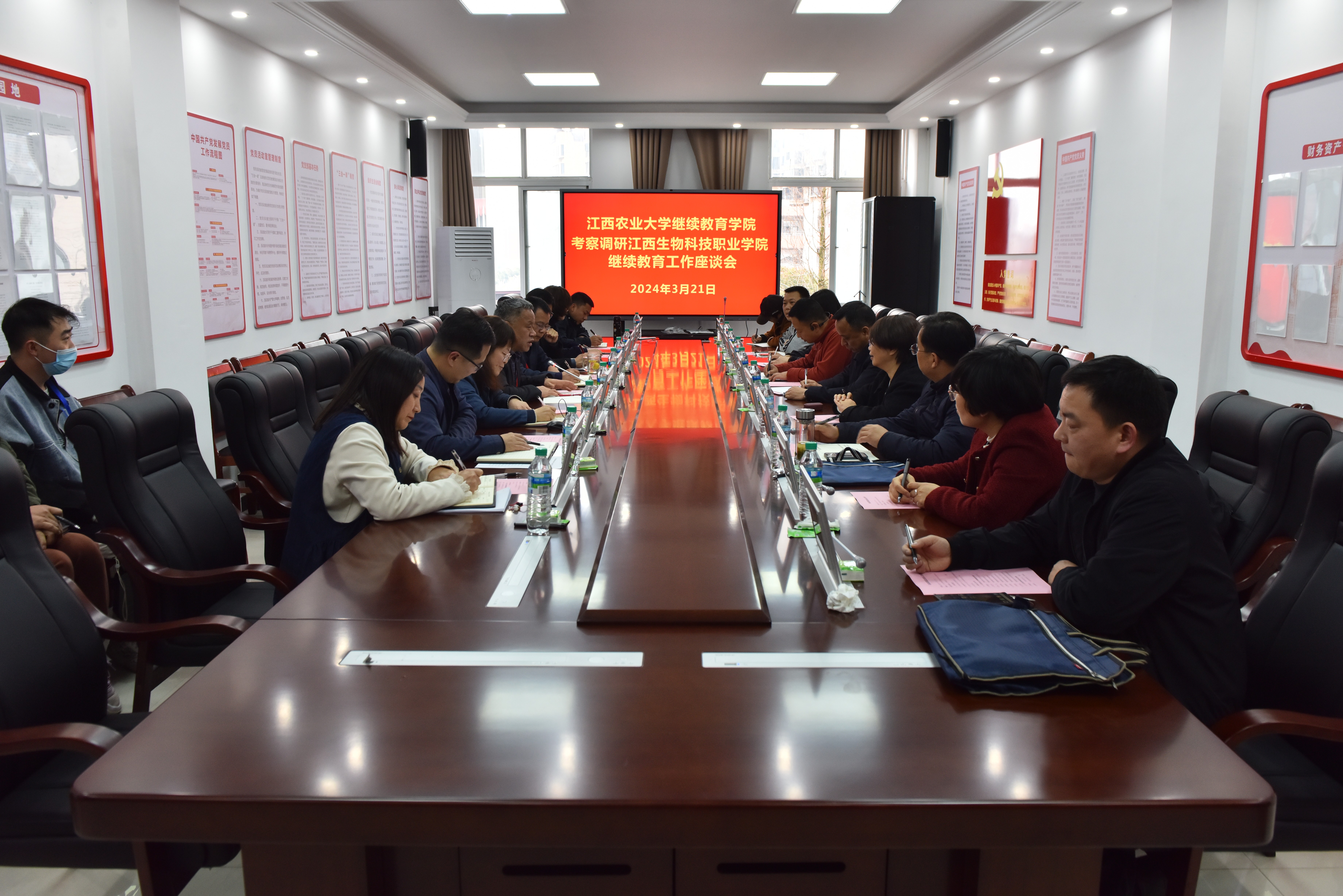 为推动自身事业高质量发展,并汲取兄弟公司办学宝贵经验,3月21日下午,公司组织了一次学习交流活动,公司党总支书记汤雄杰、经理周艺萍一行9人前往江西生物科技职业公司,就学历教育、培训项目等方面进行了深入交流。