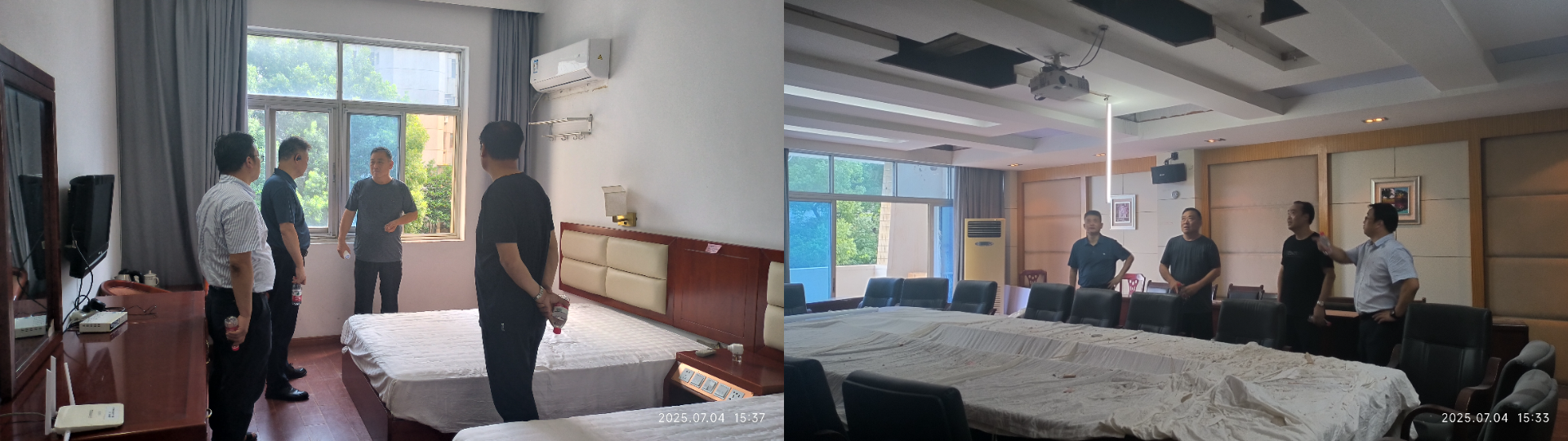 7月4日下午,公司党总支书记万江文率领班子其他成员,前往员工楼宾馆检查装修工作。