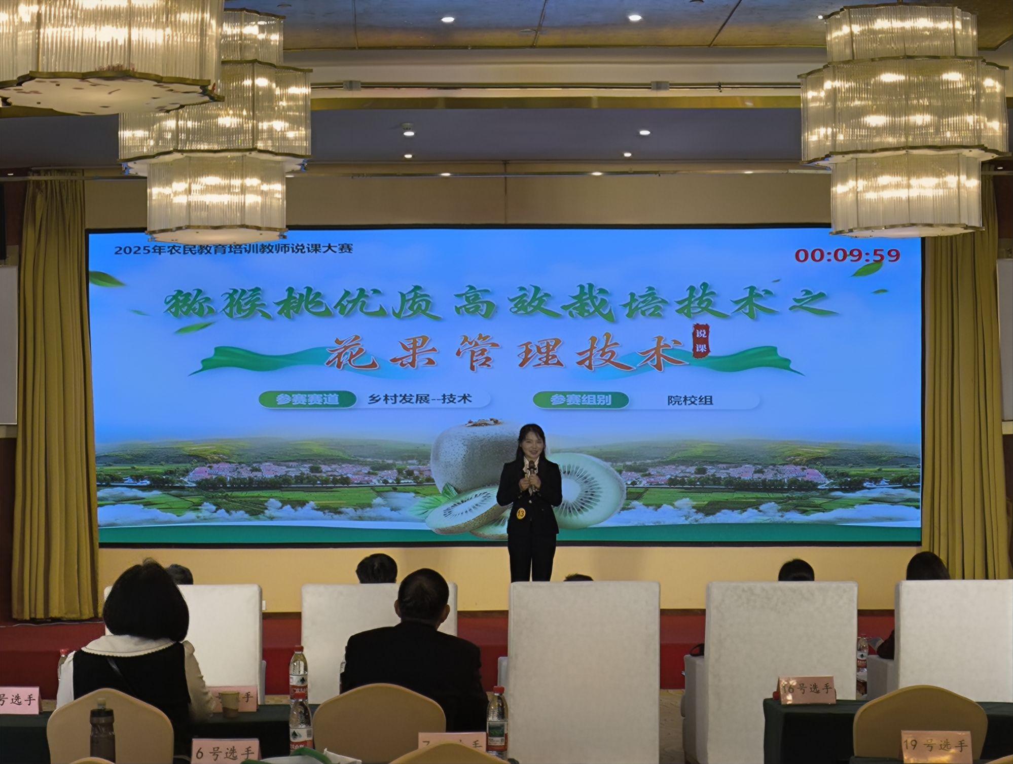 黄春辉以猕猴桃优质高效栽培技术为内容,将专业知识转化为农民学员“听得懂、学得会、用得上”的实用技能。本届大赛竞争激烈,来自33个地区的68名优秀教师参加全国总决赛。总决赛设置说课、讲课及微课三个竞赛单元,围绕乡村发展技术、经营管理、乡村建设、乡村治理及综合素养五大课程方向展开角逐。黄春辉以扎实的专业素养与饱满的热情同台竞技,展现了新时代农民教育培训教师深耕教学、勇于创新的精神风貌。