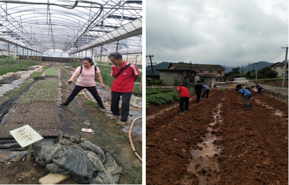 7月10日,公司蔬菜专家肖旭峰和邵考祥一行冒大雨前往新余,先后走访了良山皇虎农民专业合作社种植基地等多个基地,了解学员基地汛期种植生产情况,两位专家对学员基地生产、灾后防治等提供了技术性的指导帮助。