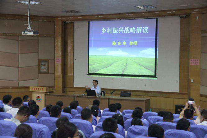 在报告中,赖金生结合江西美丽农村建设的现状,全面透彻的解读了乡村振兴战略提出的背景、主要内容和主要措施。全面梳理党的十八大以来,以习近平同志为核心的党中央,始终把解决好“三农”问题作为全党工作的重中之重,持续加大强农惠农富农政策力度,农业农村发展取得了历史性成就。他希望全体“一村一名老员工”学员潜下心来对标中央的精神,吃透一号文件,扎根农村,勇于创新,敢于创业,按照“产业兴旺、生态宜居、乡风文明、治理有效、生活富裕”的总要求,推进家乡的产业振兴、人才振兴、文化振兴、生态振兴、组织振兴,做农村基层组织的顶梁柱,做现代农业的新希望,做带领群众致富的实践者。