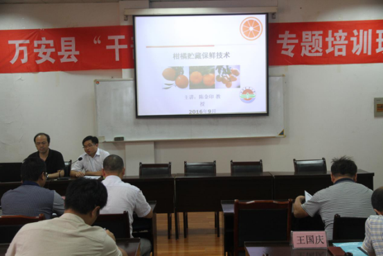 近期,由万安县委组织部主办,PA视讯平台承办的“干部学用技术”活动系列培训班在公司举行。公司党委副书记陈金印教授为第一期培训班开讲,主讲题目为“柑橘贮藏保鲜技术”。