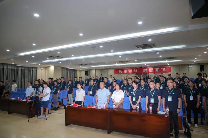 开学典礼上,导师代表周庆红、历届学员代表施勇武、2024年学员代表熊三华分别作了表态发言,导师代表和学员代表签订了“一对一”帮扶合作协议书。盛根龙还为“头雁”班级授予班旗,曾志将为“头雁”学员佩戴徽章和公司校徽。
